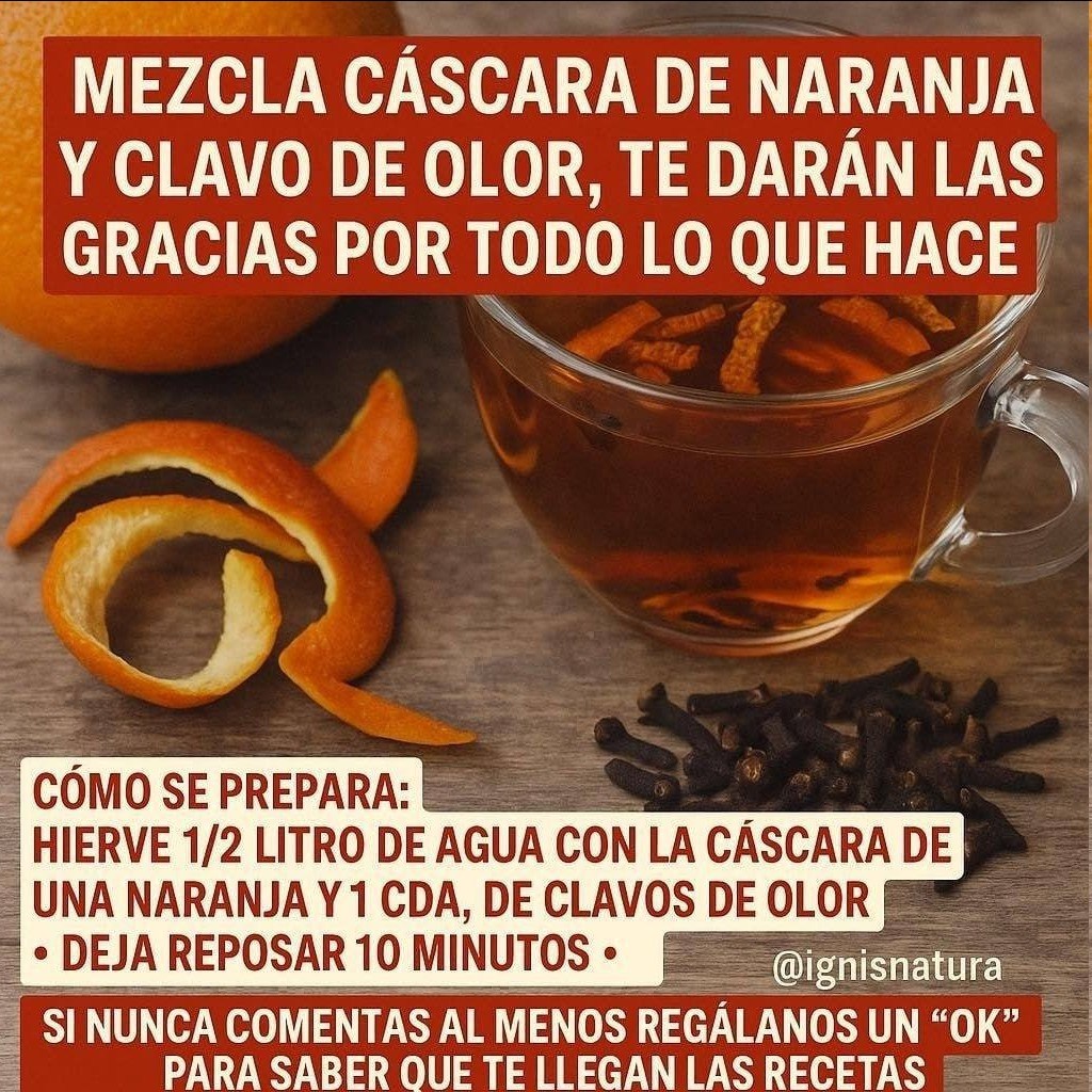 Las cáscaras de naranja están repletas de vitamina C, un nutriente esencial que fortalece nuestro sistema inmunológico. Cuando se combinan con los clavos de olor, conocidos por sus propiedades antibacterianas y antivirales, esta mezcla se convierte en un escudo natural contra resfriados y gripe.